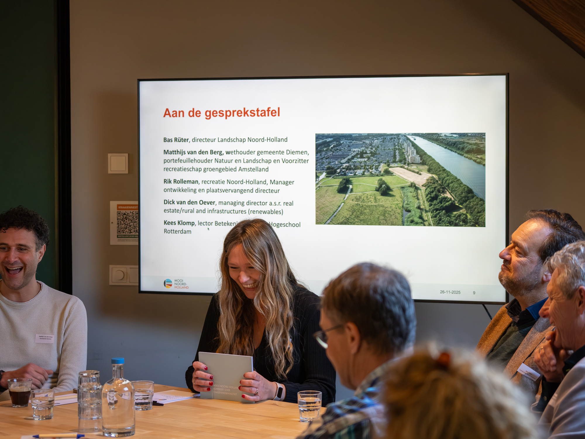 Als het gesprek binnen wordt voorgezet – aan een grote tafel op de zolder van horeca- en vergaderplek House of Bird – blijkt dat laatste lastig in de praktijk te brengen. De Diemense wethouder Matthijs van den Berg zegt dat hij het denken in prijzen nodig heeft. ‘Om uit te drukken waarom iets waardevol is zodat ik er geld voor krijg, of om te laten zien dat we veel geïnvesteerd hebben en er dus zuinig op moeten zijn.’ Ook Rik Rolleman van het recreatieschap voelt de druk om de waarde van natuur en landschap te kwantificeren. ‘Bijvoorbeeld om de budgetten voor beheer op orde te krijgen. Ik vind het bizar dat we weten wat natuur en landschap voor ons doet en dat we daar toch – en dan kijk ik ook naar de provincie – zo weinig geld voor over hebben.’