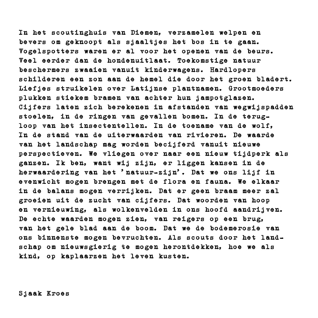 Tijdens de bijeenkomst was dichter Sjaak Kroes aanwezig. Vanuit zijn observaties, gesprekken en indrukken maakte hij ter plekke een gedicht dat de sfeer, de thema’s en de onderliggende vragen van de dag treffend samenvat.